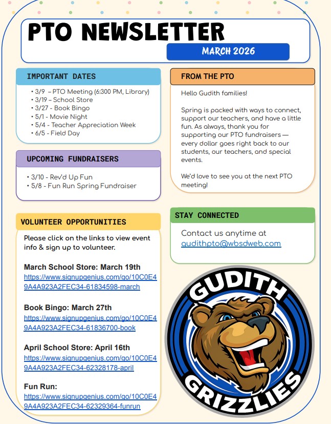 You also have the option to shop our book fair online, beginning Monday, March 9th, at https://www.scholastic.com/bf/gudithelementaryschool |