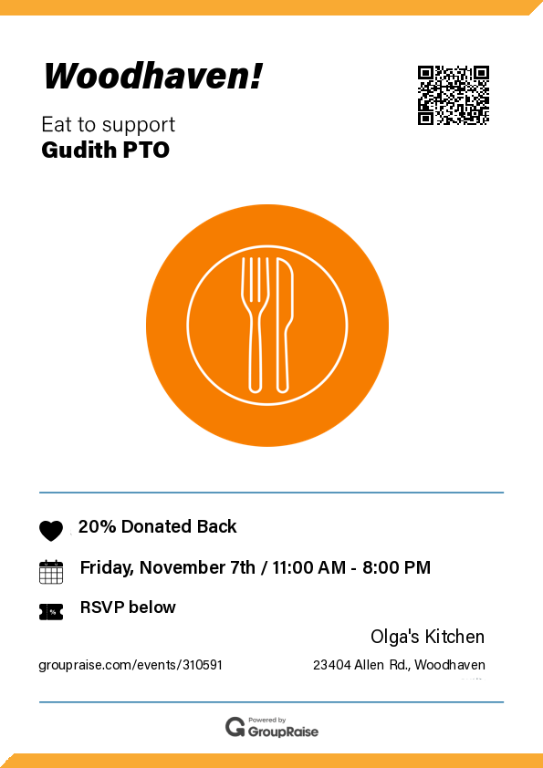 ✅ Mark your calendar ✅ Bring your family and friends ✅ Dine at Olga's in Woodhaven on November 7th ✅ SHARE THIS POST to help spread the word! |