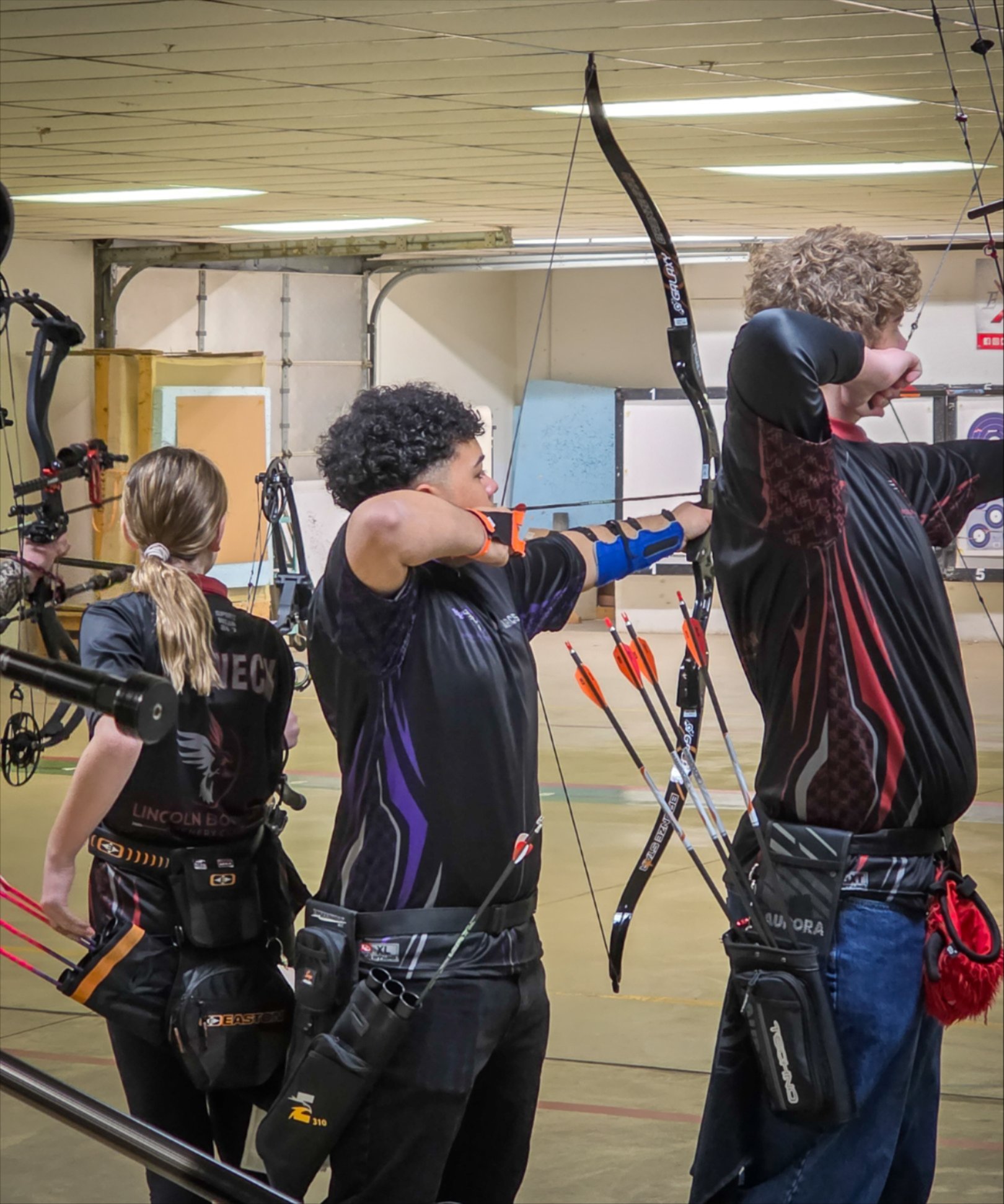 Jenna Moran, Adriana Couls, Aiden Peters, Arianna Kasperski, Ayden Foucher, Benjamin Heaney, Samantha Manning, Emma Wekwert, Grace Sucharski, Harmony Amin, Marcus Richmond, Nathan Jordan, Nolan Moritz, Olivia Sargent, and Trang Hoang. The team is coached by experienced staff from the Lincoln Bowmen Archery Club, including Brian Warneck, Colleen Cusumano, Jim Aimar, and Kris Eastabrooks.