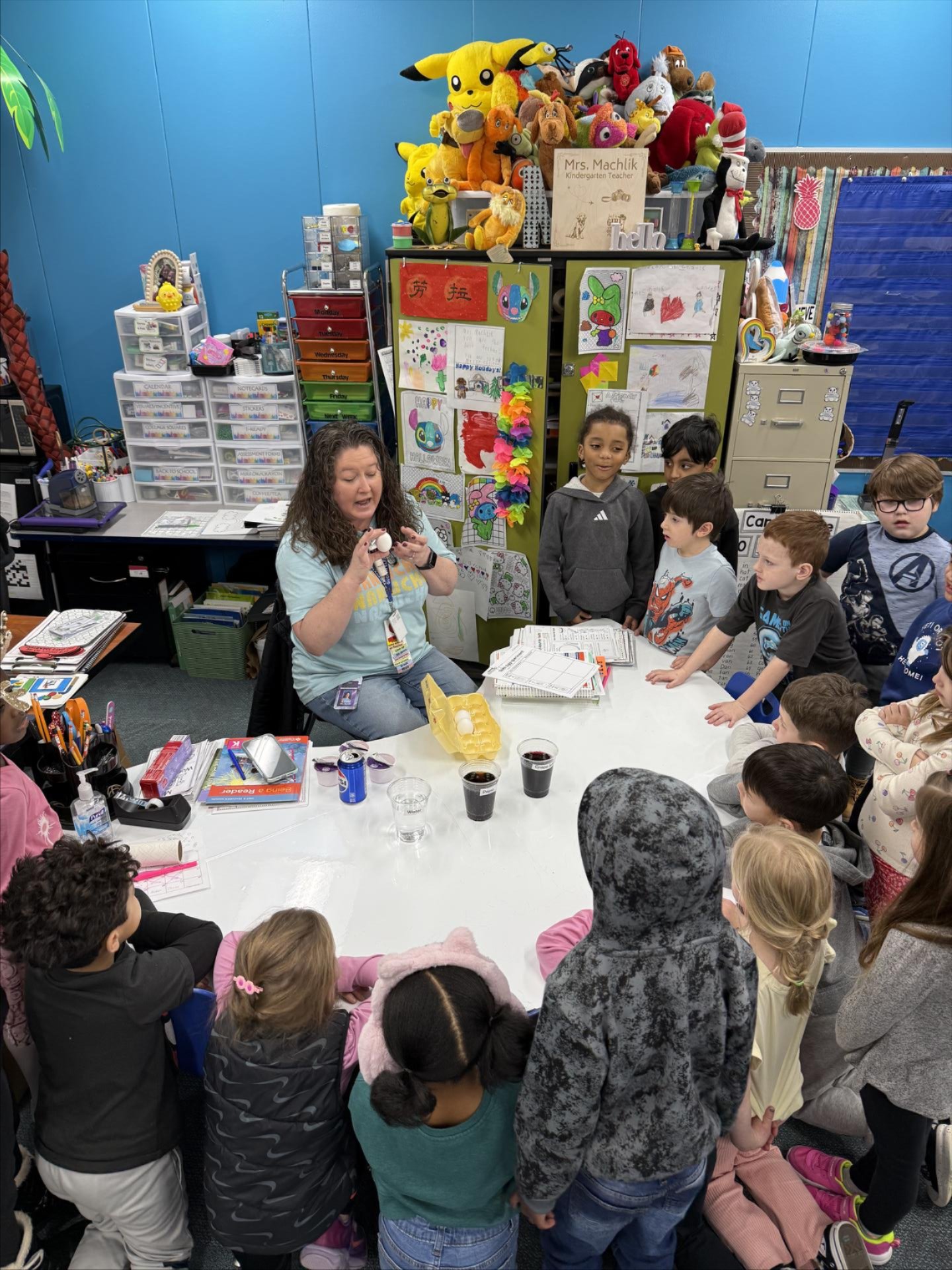 Students in Mrs. Machlik’s kindergarten class at Gudith Elementary have been busy learning all about tooth enamel and how different foods and drinks can affect our teeth! To see it in action, they conducted a hands-on experiment using a “grape juice” egg to represent stained teeth. With toothbrushes and toothpaste in hand, they worked carefully to scrub away the purple stain… and it worked!!