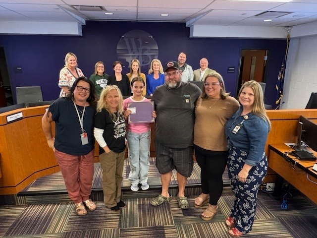 Evelyn Nichols, a 4th grader at Bates Elementary, was recognized at last night's WBSD Board of Education meeting for going above and beyond while riding the bus with a substitute driver. As the designated Safety, Evelyn took full charge of the seating process - guiding each student row by row to ensure everyone was properly seated.