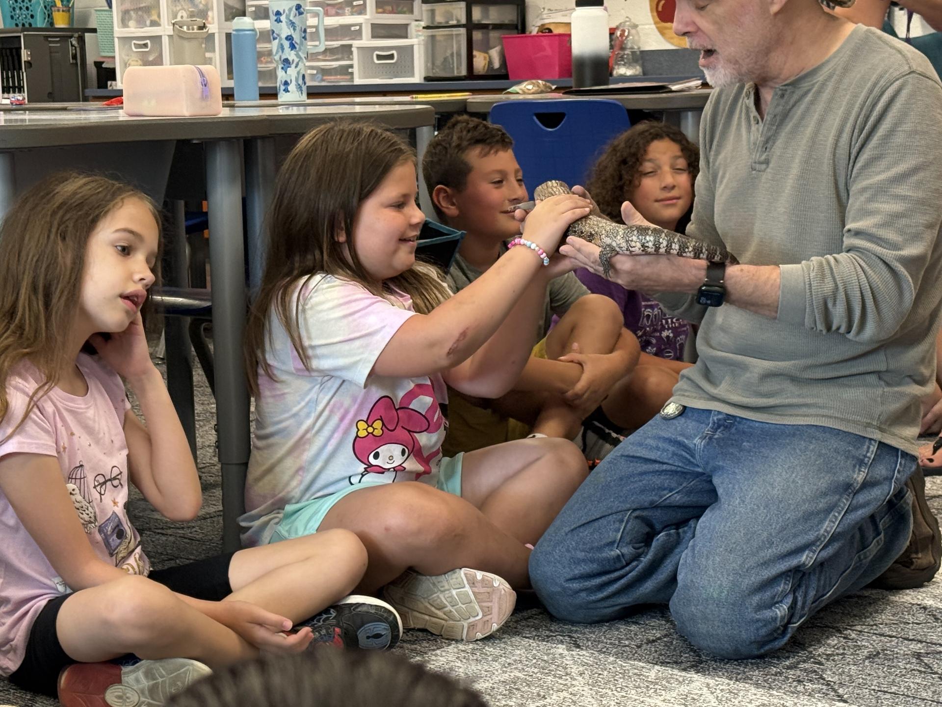 While at the WUE, Rosser met with Principal Roger Gurganus, Assistant Superintendent of Curriculum Josh Satterfield and Jaskolski for a tour of the school and a discussion of the unique programming at the upper elementary 5th and 6th grade building. Rosser also got to learn how to play the drums with an interactive session with the fifth grade choir students as well in Mr. Seibert’s class.